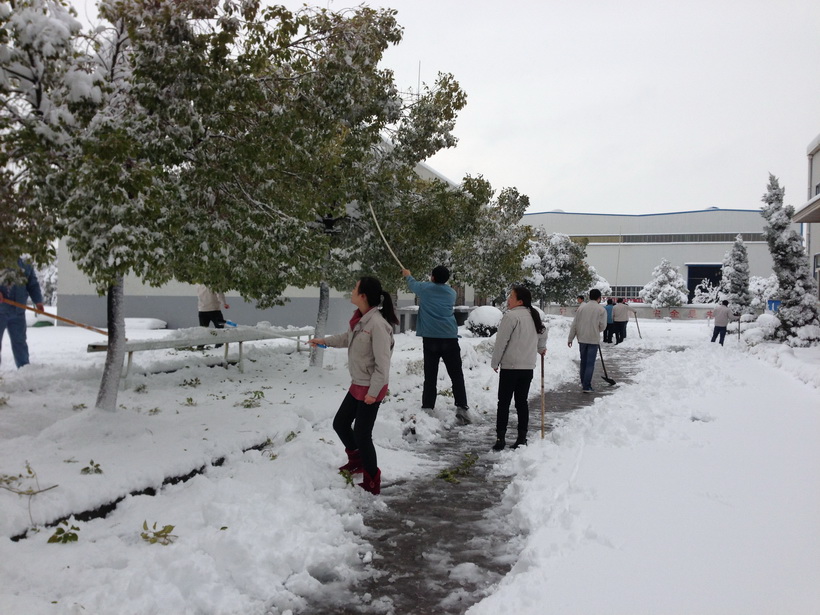 2月18日晚,馬鞍山市普降暴雪,至2月19日早晨,路面積雪覆蓋、道路結冰,公司整個廠區(qū)白茫茫一片。為保障員工的安全通行和正常生產(chǎn),公司本部機關、釹鐵硼廠、機械廠、通力公司及南磁廠積極組織員工掃雪。公司領導身先士卒,其他同志們也爭先恐后,盡管寒風凜冽,路面濕滑,但大家踏著積雪,頂著寒風,拿起鐵鍬、掃帚等工具,掃的掃,推的推,個個干勁十足努力爭先,熱火朝天的開展除雪工作。經(jīng)過近2個小時的奮斗,將公司廠區(qū)及樹木上的積雪基本清理干凈,為過往的員工、車輛提供便利,確保了交通順暢和員工出行安全,保證了公司正常生產(chǎn)。
